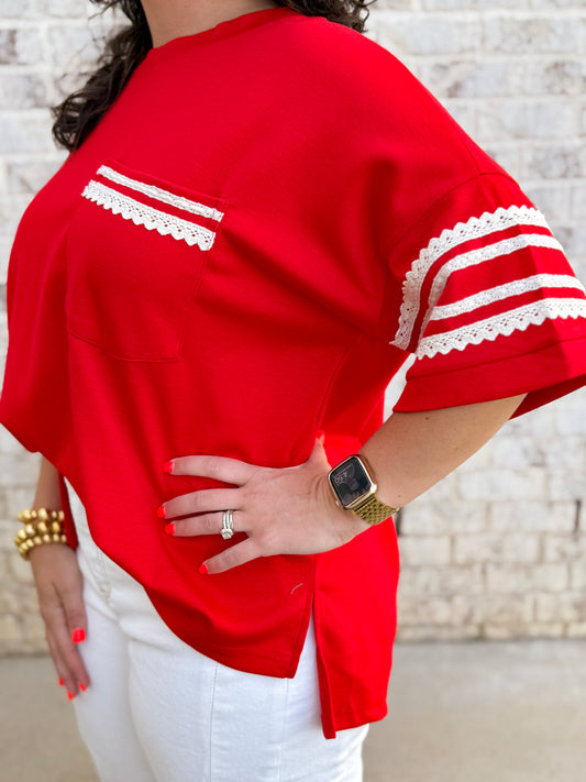 Lace Trim Pocket Tee