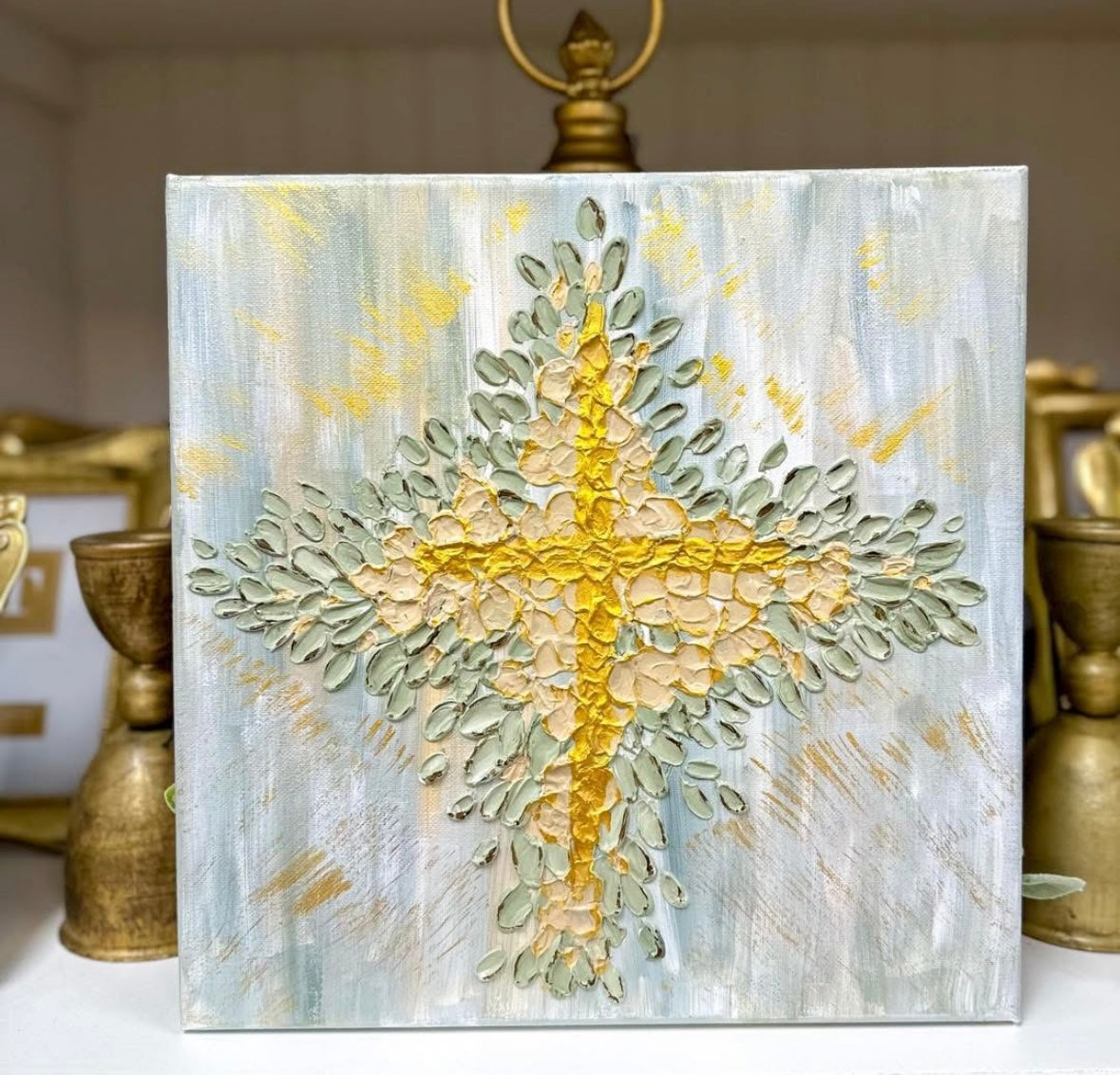 Each piece in this collection is hand-painted by Jana Watts, a local artist and beloved member of our store family. Her work blends seasonal charm, faith-filled symbolism, and textured beauty.