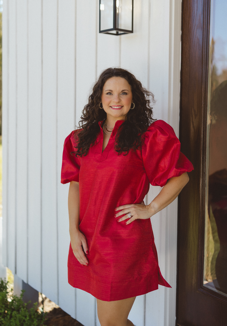 Red Puff Sleeve Mini Dress